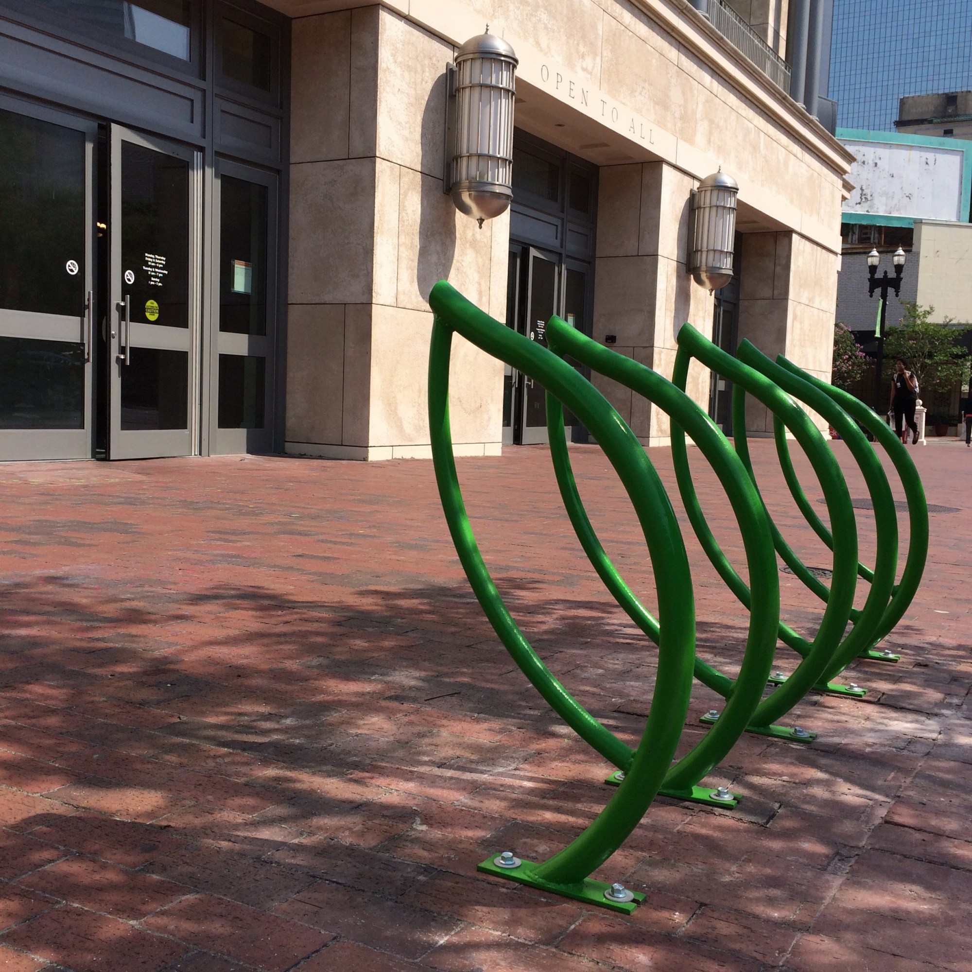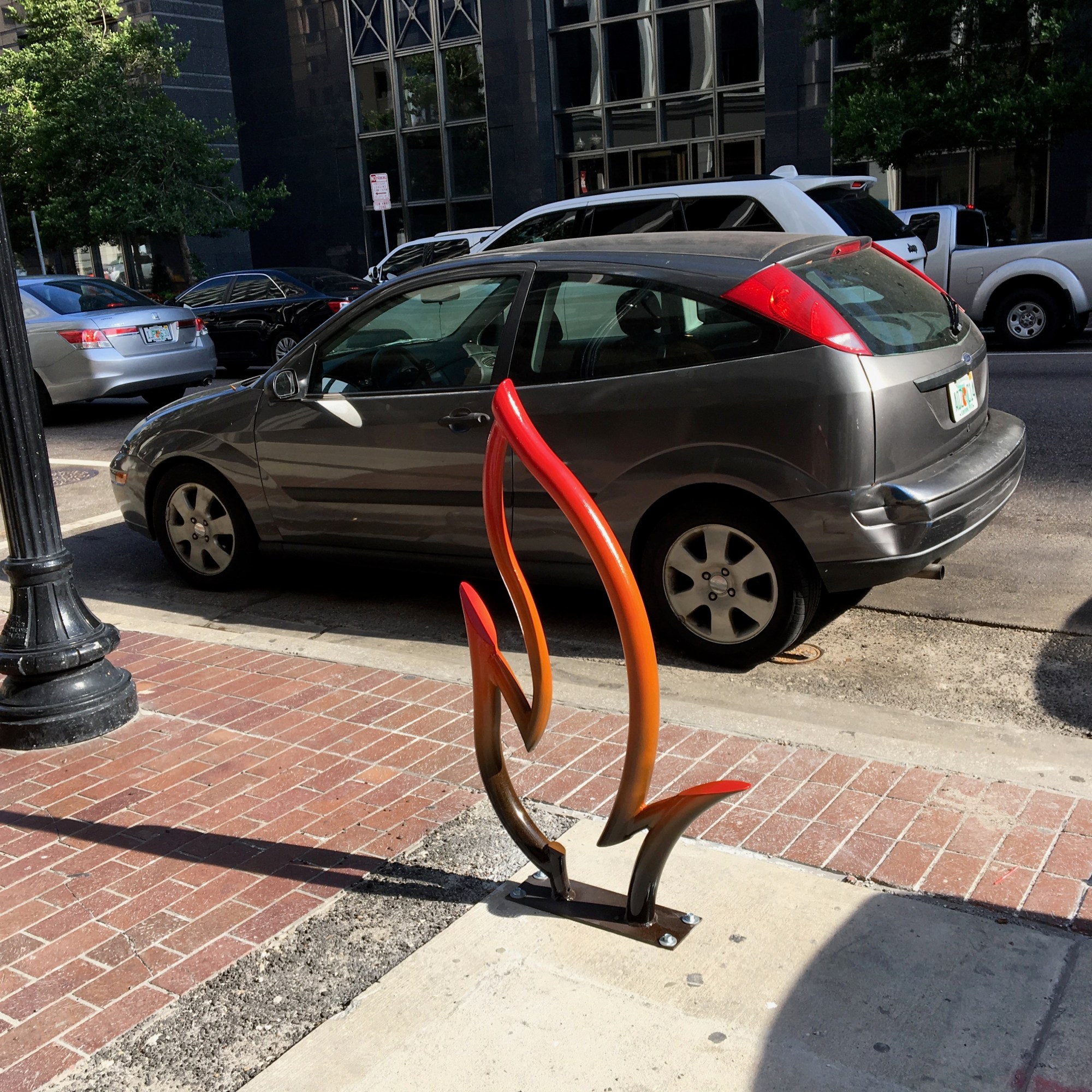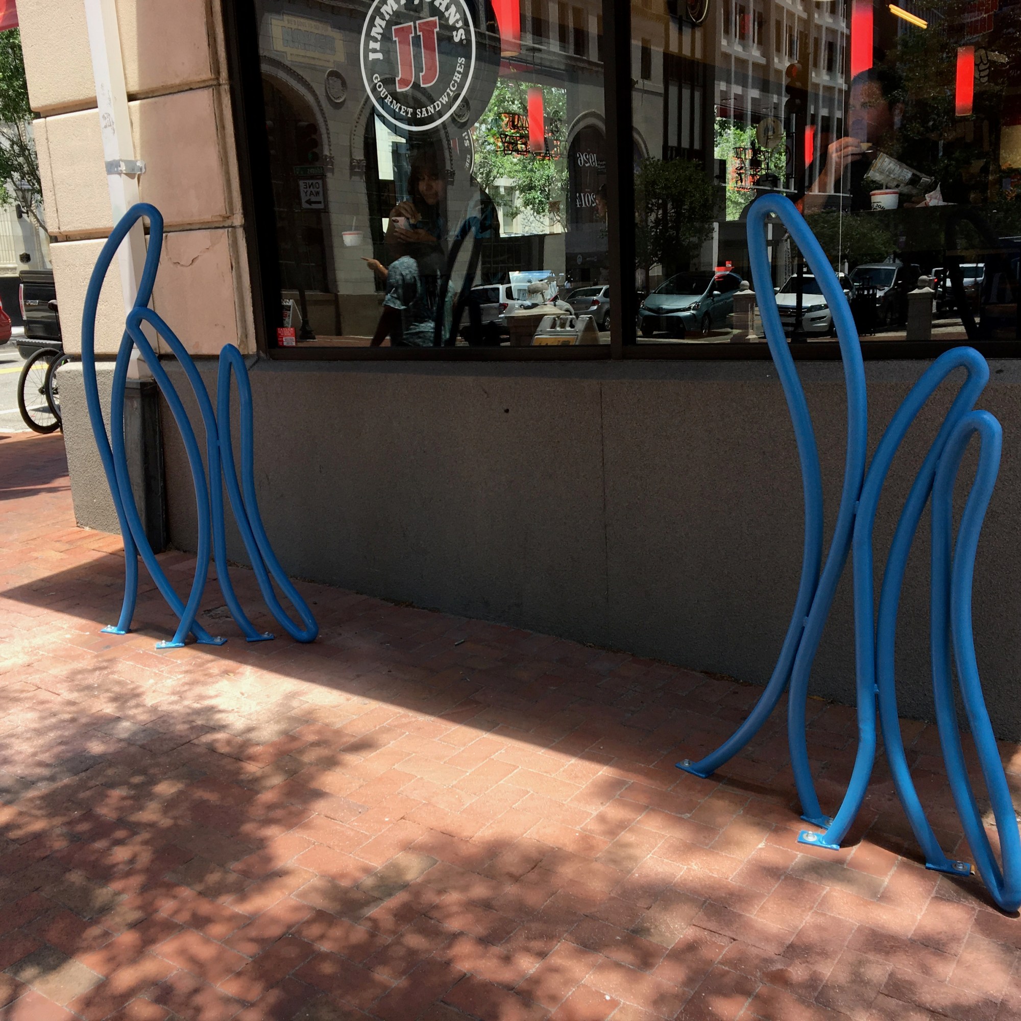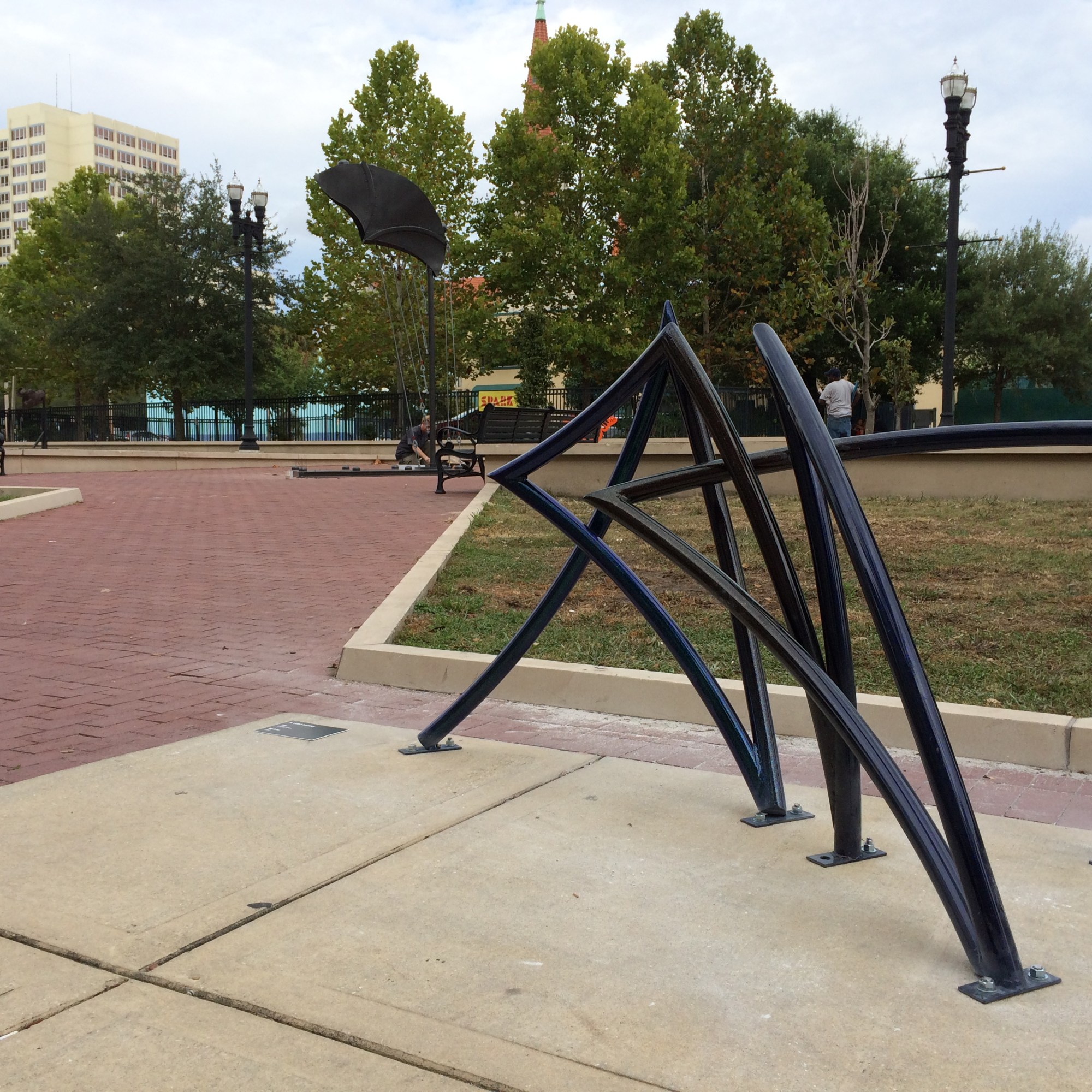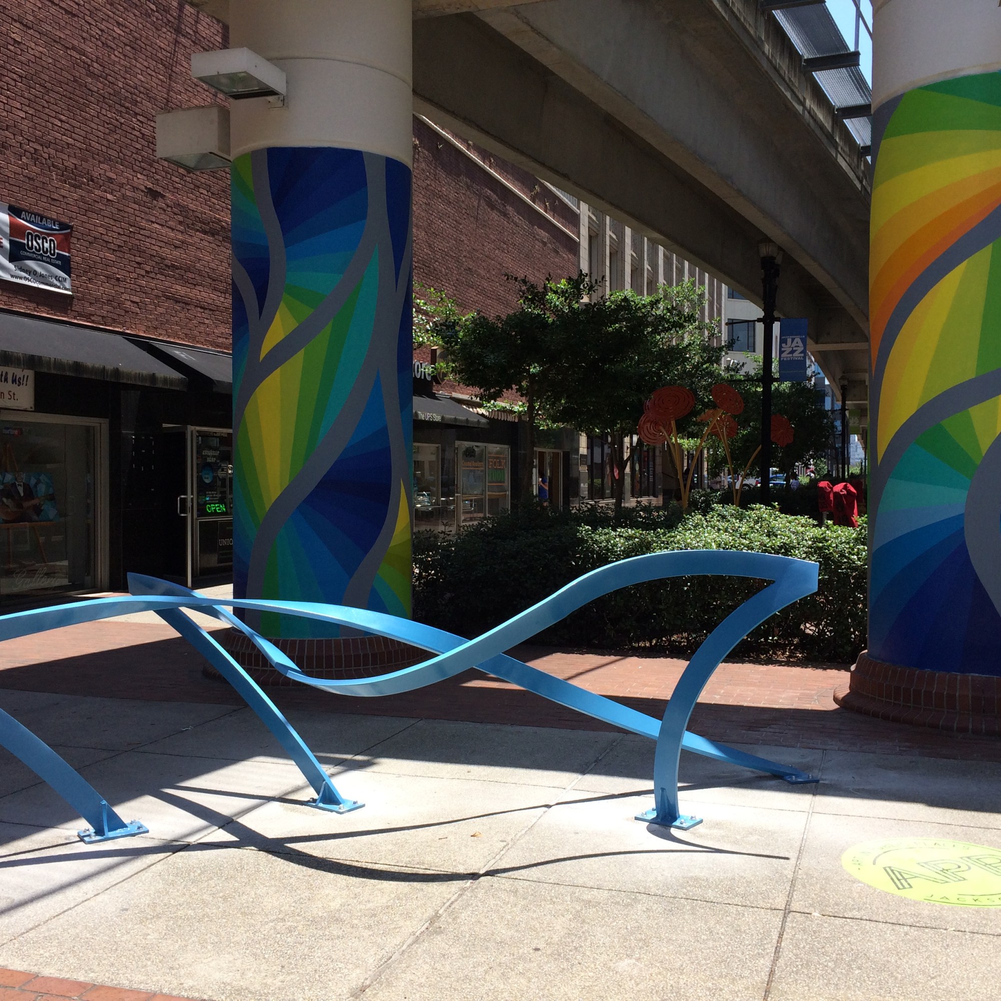 Graffiti is the other bench pictured here (lower right). It is a graffiti style bike rack, which was designed for Main Street Park in downtown Jacksonville.