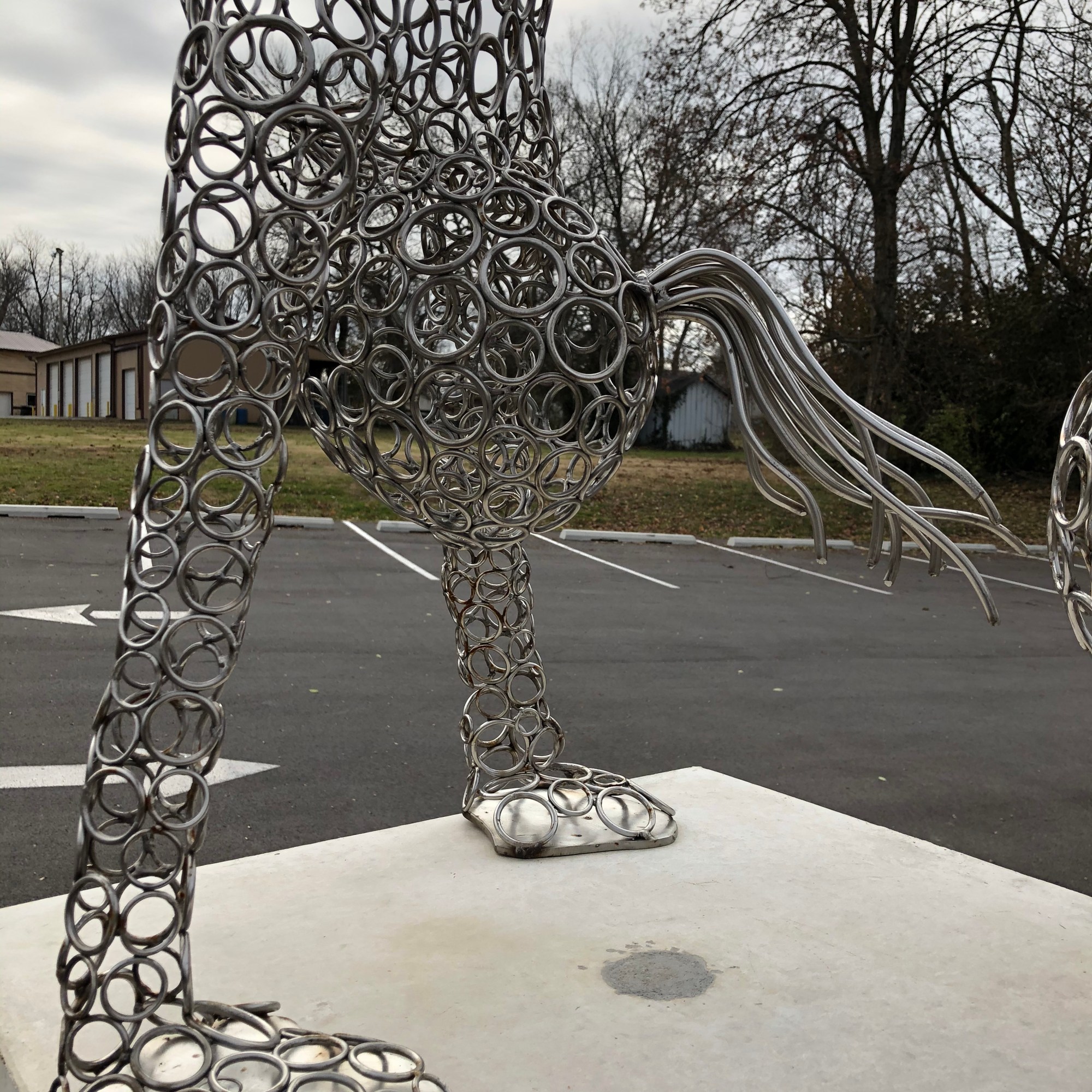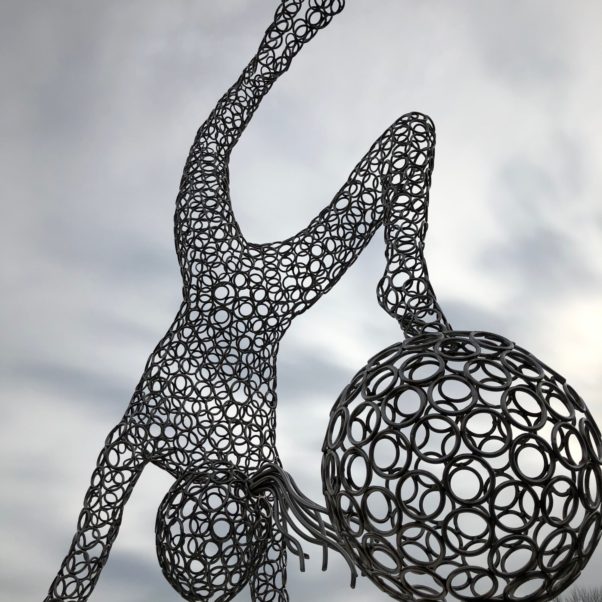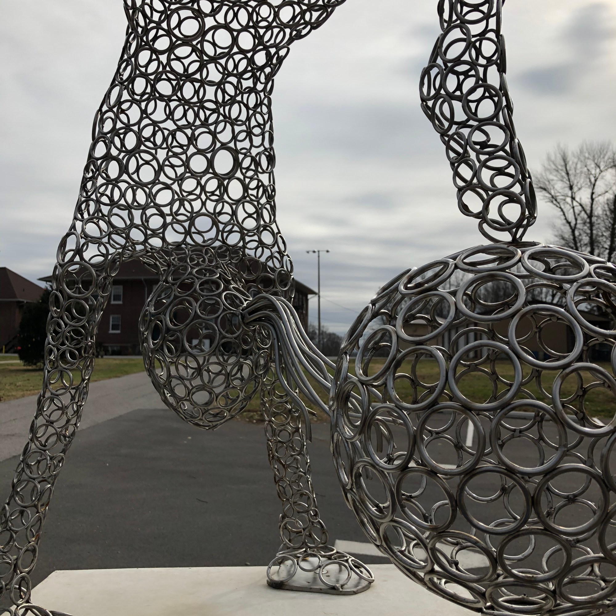 Little Gymnast is a commission from Shelby KY Tourism. We created a life-size child gymnast for Simpsonville, KY at the new pavilion. For this project, we utilized stainless steel rings to create the figure.