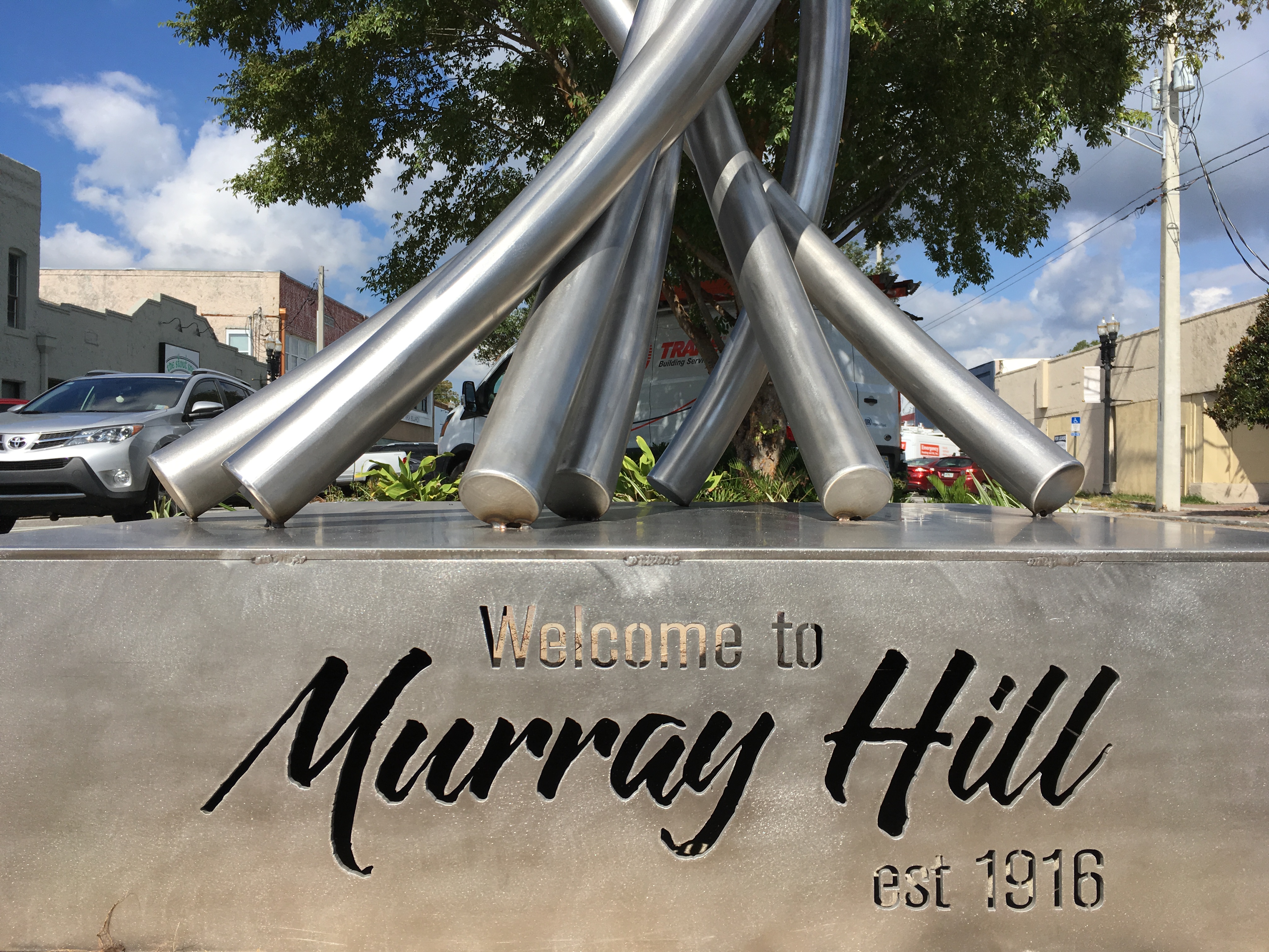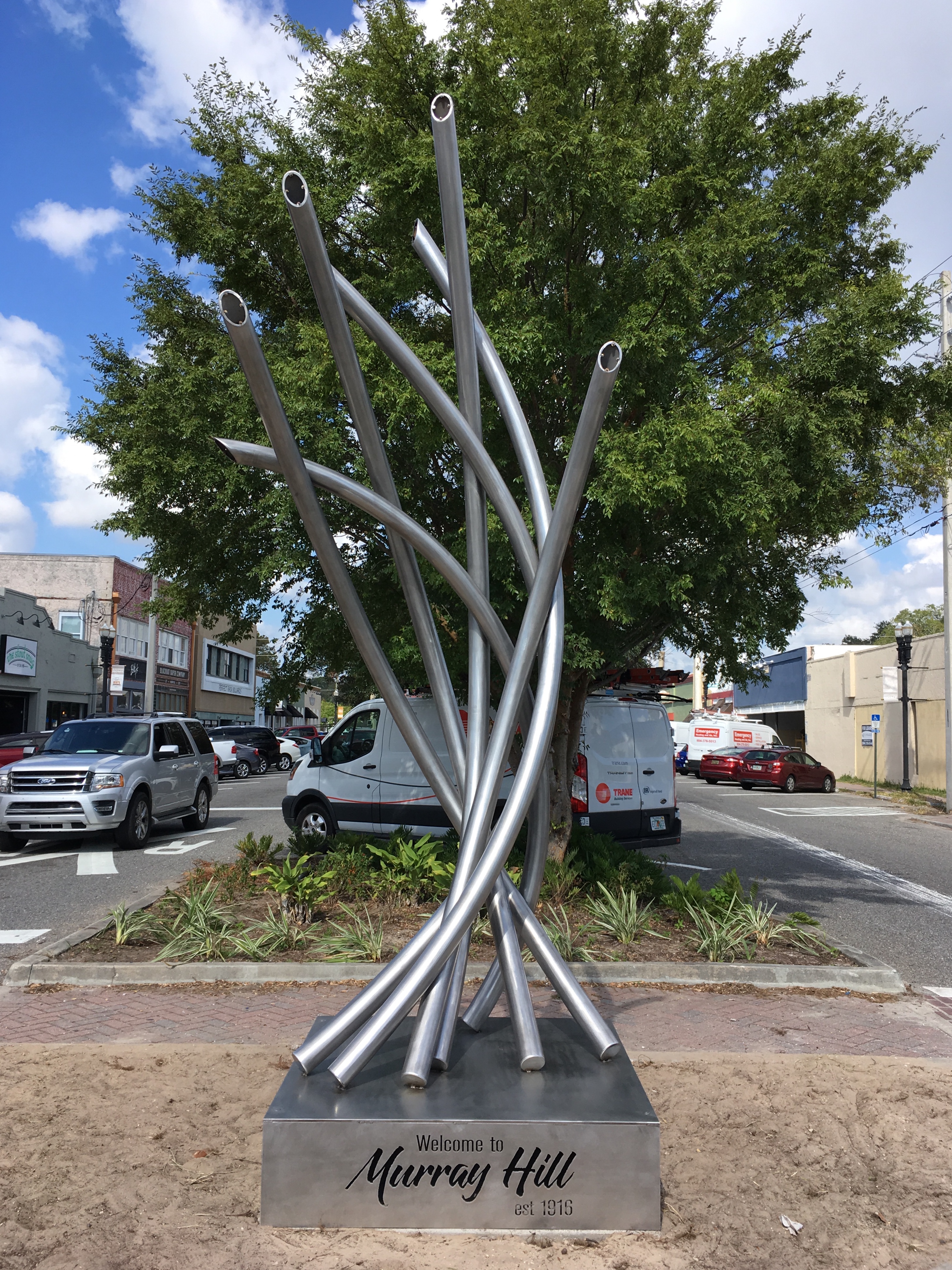Reawakening was created for Murray Hill, a neighborhood in Jacksonville. The piece is inspired by the great fire of 1901. Murray Hill was one of the areas in Jacksonville that sprung to life as a result of the fire.